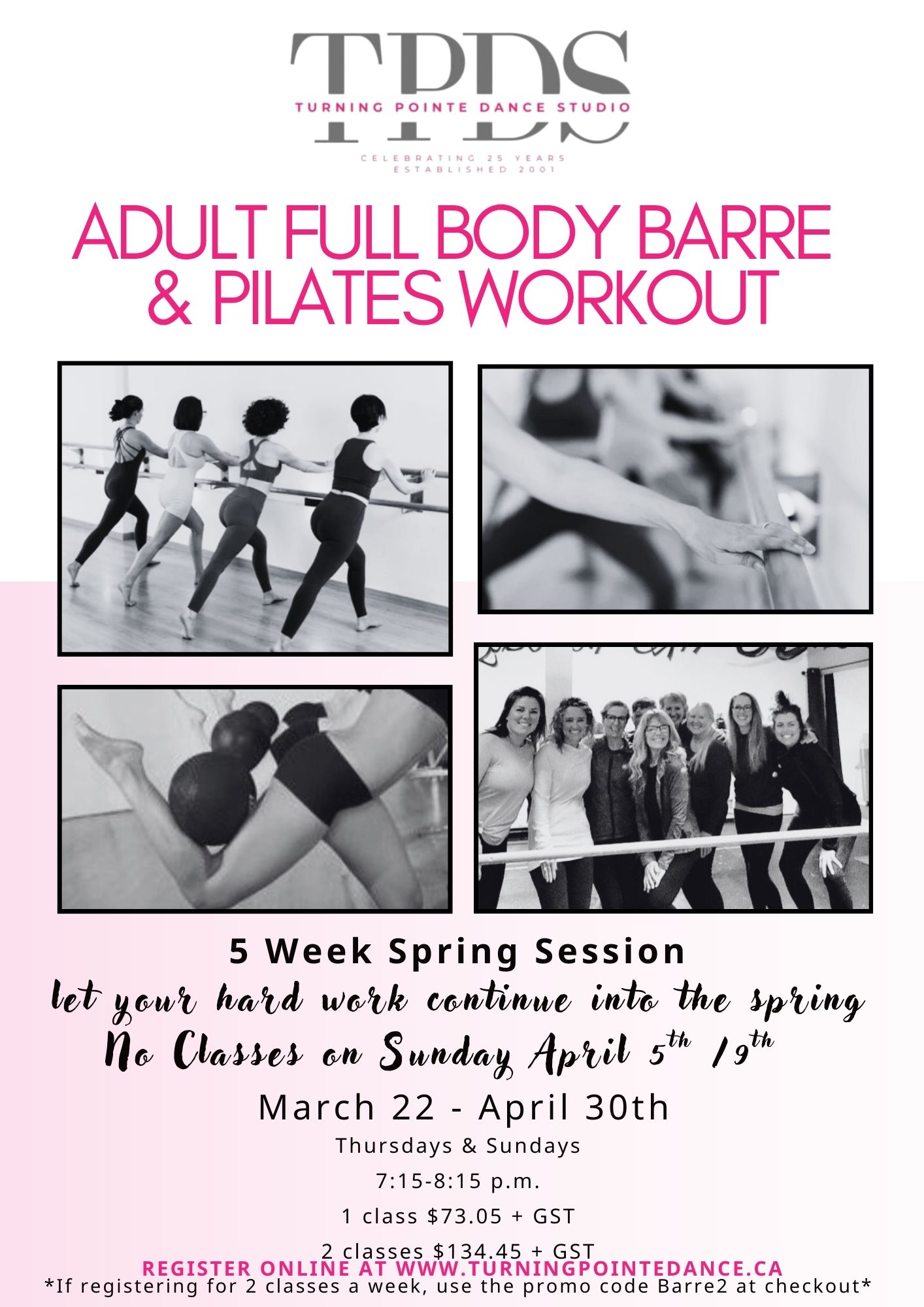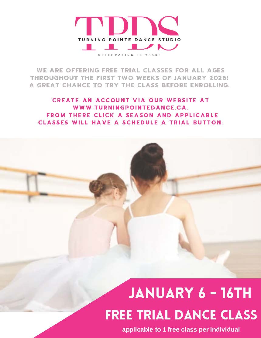 Classes are available for ages 18 months through to adults! At Turning Pointe, we take pride in offering three distinct programs to accommodate the needs of all families: Sessional (8-12 weeks with optional performance), Full-Year (September to May programming with optional performances), and Competitive (which includes mandatory ballet classes twice a week and participation in 1-2 competitions each year).
